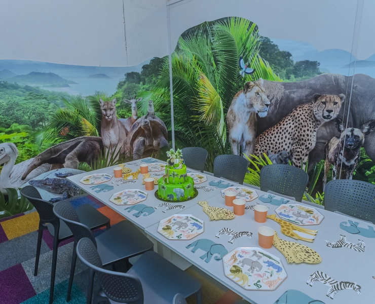 Koks gyvūnas tavo mėgstamiausias? Ar viską apie jį žinai? Ką valgo? Kur gyvena? Kada miega? O gal nemiega! Pažink džiunglių gyventojus, pakviesk juos į savo šventę. Dainuokite, šokite ir švęskite kartu. Juk Adventica - vieta, kur pildosi gimtadienio norai, o tortu vaišinasi ir džiunglių kambario gyventojai.