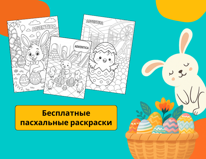 Эти раскраски созданы специально для детей – в них вы найдете пасхальных кроликов, яйца, игровые зоны и веселые сцены из мира Adventica.