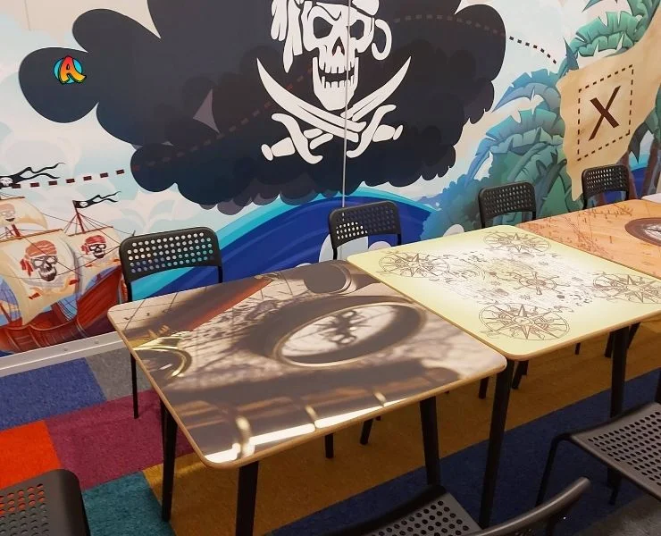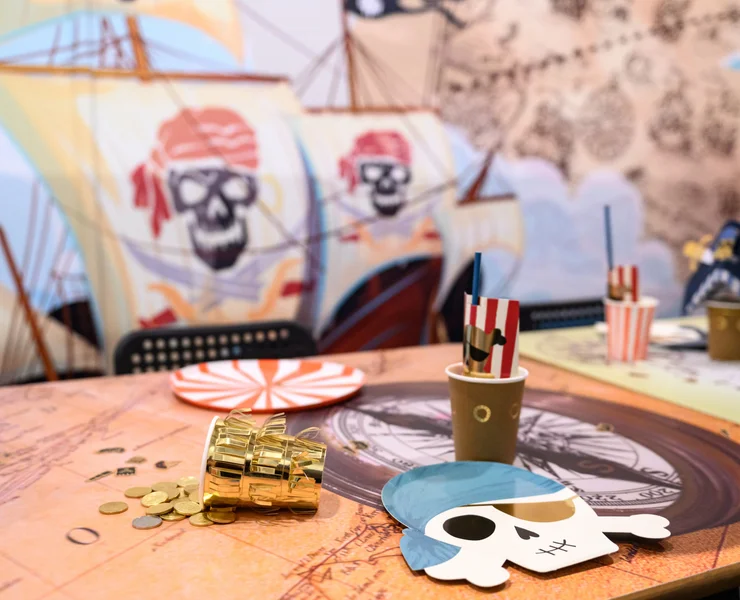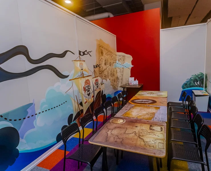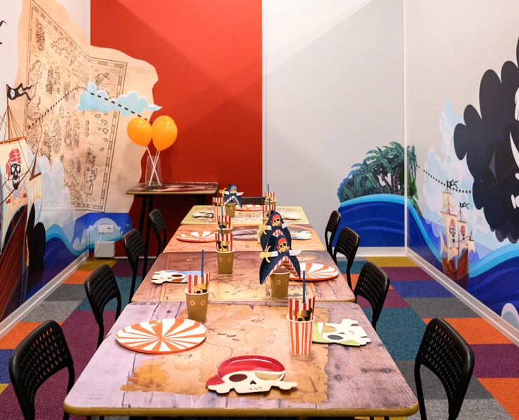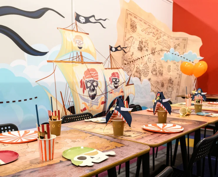 Капитан Тенкеш или Карибские пираты?.. Это комната для дня рождения для любителей приключений! Пиратские парусники, огромная карта и бурное море! Идеально подходит для десяти моряков, но можно дополнительно разместить еще пятерых. Комната для дня рождения, которая не оставит равнодушными... И совсем неважно, где находится юбиляр: в Вильнюсе, Кауне, Клайпеде, Алитусе, Паневеже или Мариямполе! Приглашаем вас испытать приключения морских пиратов в комнате для дней рождения семейного развлекательного парка ADVENTICA!